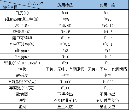 "海達(dá)牌"超細(xì)滑石粉是選用優(yōu)質(zhì)滑石礦為原料,經(jīng)過(guò)采選、水洗、風(fēng)干、破碎、研磨等工序加工而成。每道工序,都嚴(yán)格按照中國(guó)藥典2010版的操作規(guī)格和檢測(cè)標(biāo)準(zhǔn)進(jìn)行生產(chǎn),最終產(chǎn)品經(jīng)檢測(cè)合格后,才準(zhǔn)予包裝出廠。產(chǎn)品應(yīng)用于西藥、中成藥、糖漿輔藥.